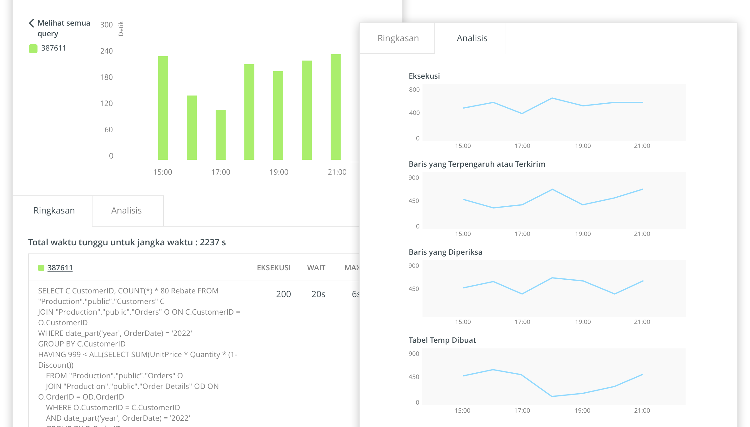 SQL Profiler membantu Anda melacak, mengidentifikasi, dan memecahkan masalah di server PostgreSQL. Anda dapat memulai dengan mengidentifikasi query yang berjalan lama hanya dengan beberapa klik. Kemudian, Anda dapat menganalisis query secara efektif untuk mengevaluasi apakah query tersebut dapat dioptimalkan, menentukan jadwal eksekusi pelacakan, dan secara drastis meningkatkan performa database Anda.
